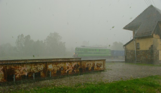 W Ścinawce znienacka nadeszła burza gradowa, którą przeżyliśmy dzięki wyjątkowemu wyposażeniu w postaci okazałego parasola ogrodowego i przeciwdeszczowej odzieży.